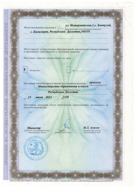 | Адрес местонахождения образовательной организации* | 368101, г.Кизилюрт, пос.Бавтугай ул.Интернатская №1 |